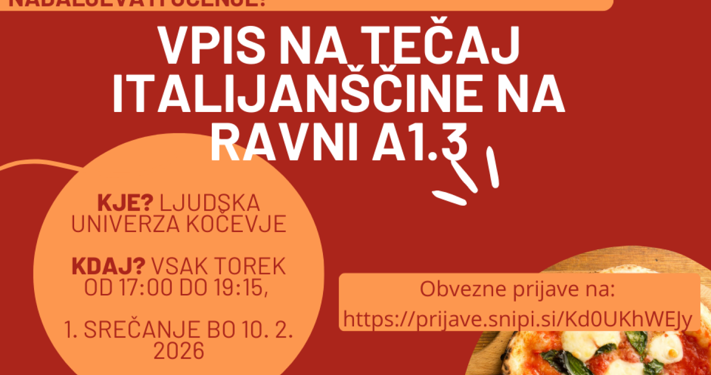 Tečaj bo potekal vsak torek od 10. 2. do 19. 5. 2026, od 17:00 do 20:00, v prostorih Ljudske univerze, Trg zbora odposlancev 30, 1330 Kočevje.